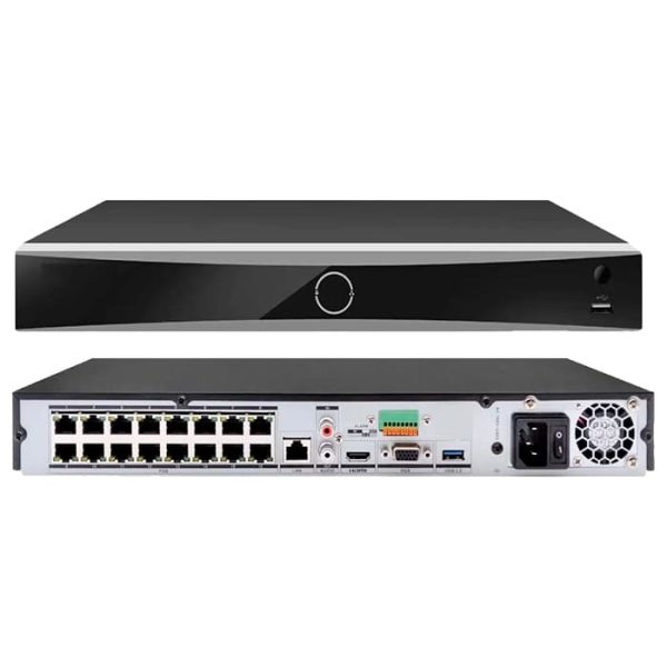 NVR 12 MEGAPIXEL (4K) / 16 CANALES IP / 16 PUERTOS POE+ / RECONOCIMIENTO FACIAL / ACUSENSE (EVITA FALSAS ALARMAS) / 2 BAHÍAS DE DISCO DURO / SWITCH POE 300 MTS / HDMI EN 4K / ALARMAS I/O / 300 METROS